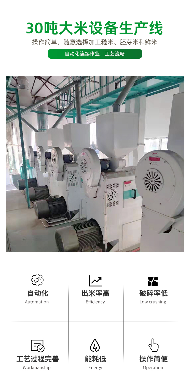 2、設備先進,本成套設備配備了我公司的**清理設備、**脫殼設備、新型碾磨設備以及大米**分級設備。這些新技術與設備的應用,使得設備具有出米率高,碎米率低且成品米金燦明亮。