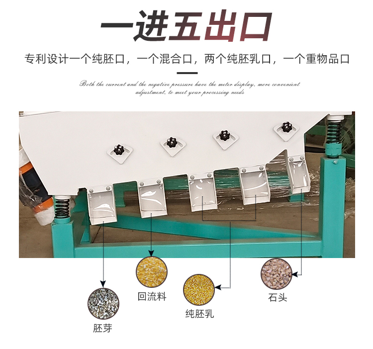 : 1. 體積小,提胚效果好,動力小,產量高,耗能低。 2. 物料易進入胚芽和胚乳分離區,分離迅速徹底。 3. 設備采用可調的,能承受很高的轉速和震動頻率,運轉平穩,使用壽命長。