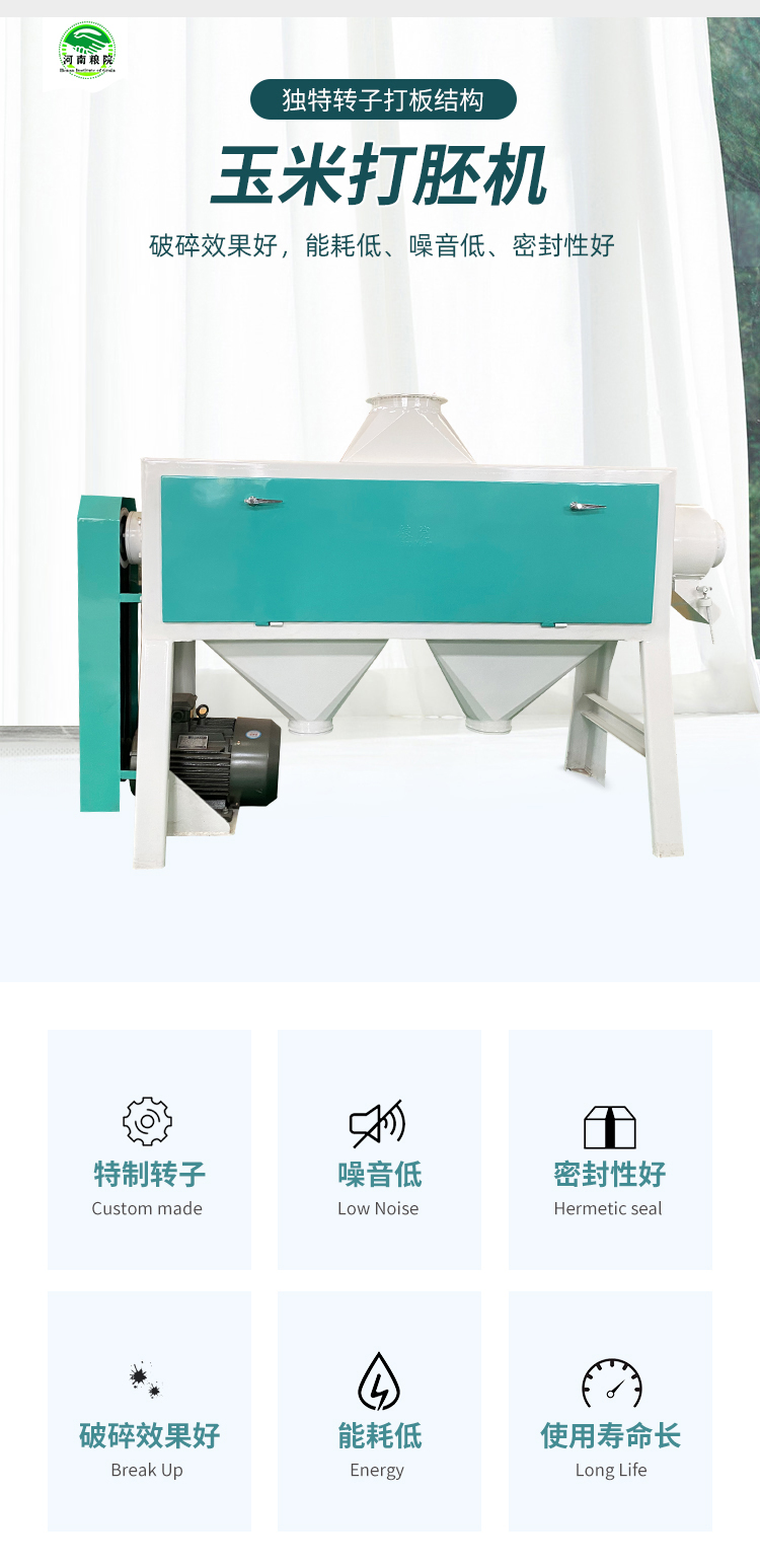 TTPW系列臥式玉米打胚機通過高速旋轉的特制轉子對玉米進行破碎,使玉米胚芽及胚乳分離,通過篩筒的孔眼使破碎的皮及碎屑經出糠扣排出。該系列打胚機具有獨特的轉子打板結構,打板經表面熱處理,使用壽命長,篩筒打板更易于更換。該系列玉米打胚機破碎效果好,能耗低、噪音低、密封性能好、外形美觀。