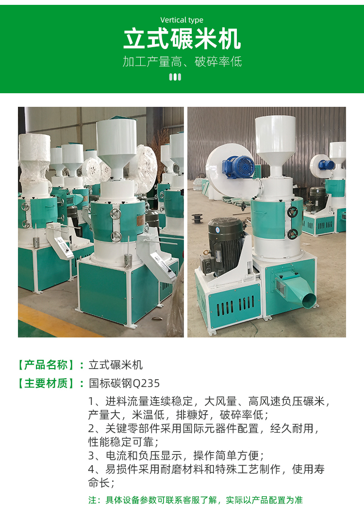 立式碾米機(jī)是根據(jù)國(guó)內(nèi)外稻米加工需要,結(jié)合本公司長(zhǎng)期研發(fā)碾米機(jī)的成熟經(jīng)驗(yàn),采用現(xiàn)代機(jī)械制造工藝,精心設(shè)計(jì)、制造的新型碾米機(jī)。