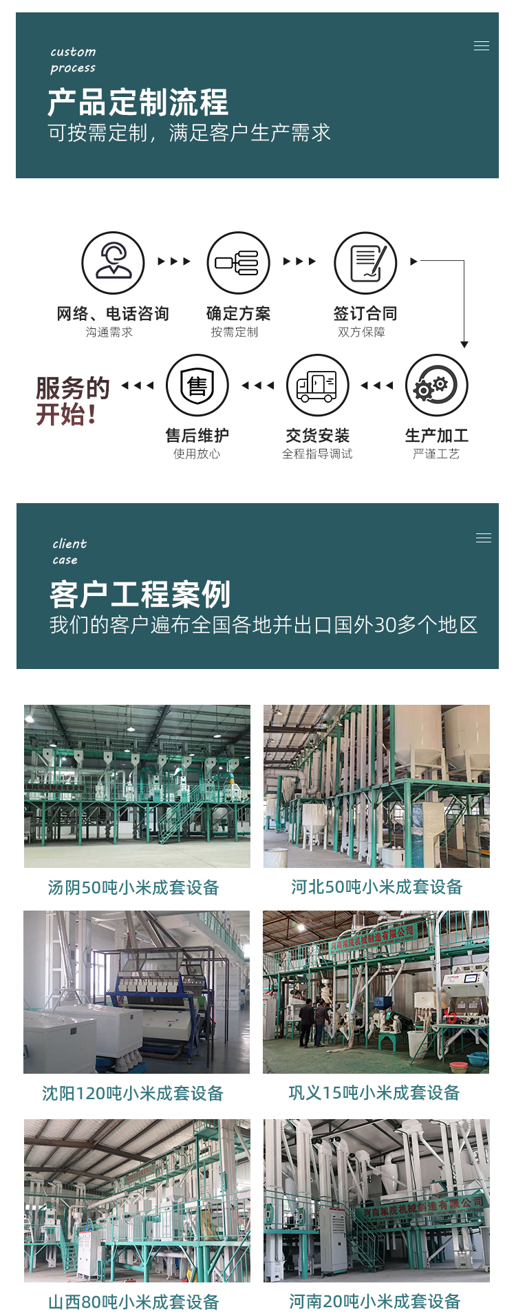3.產品出品率:小米60-70%米糠30-35%碎米2%總成品率:65-72%