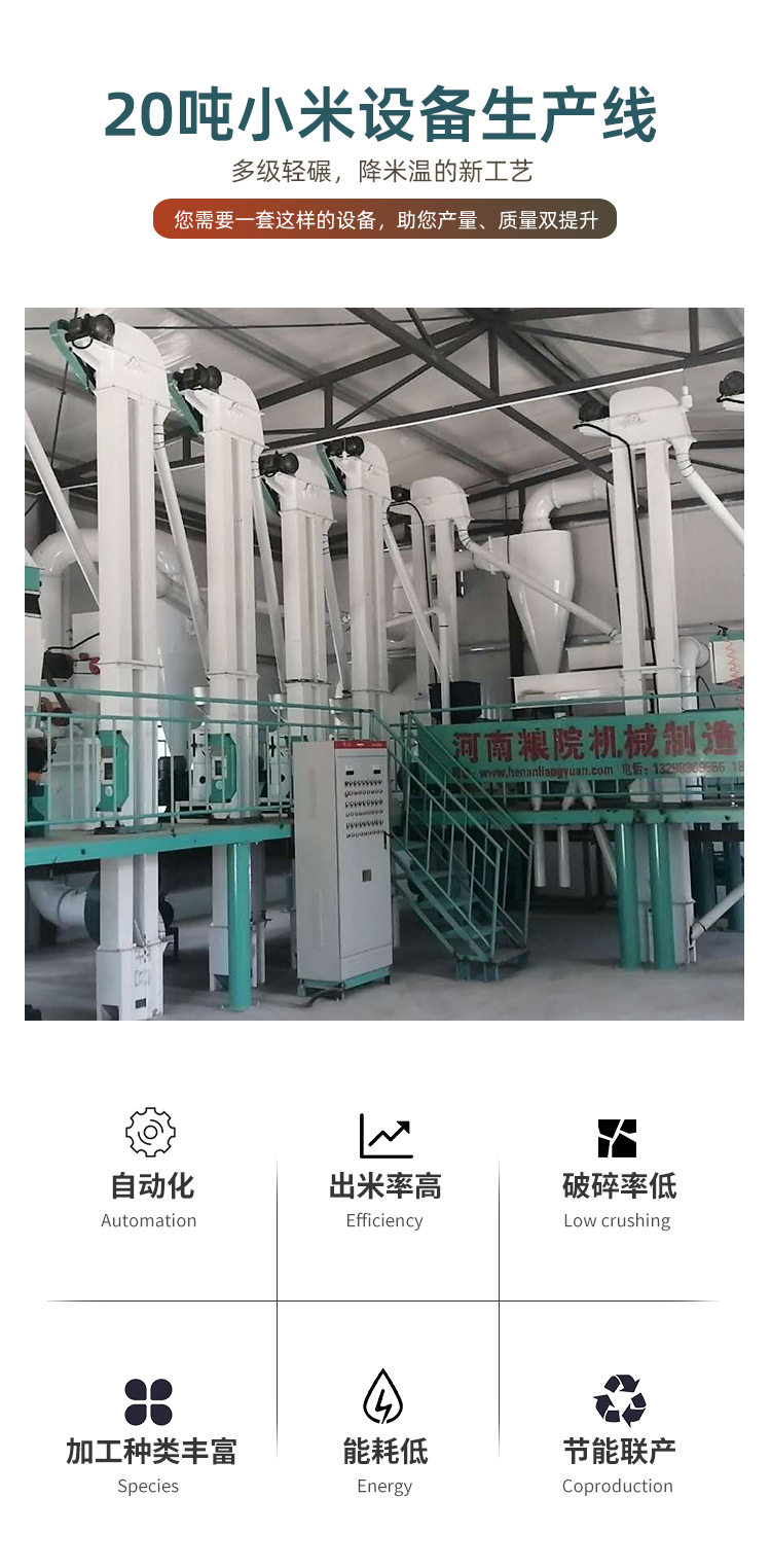 該生產(chǎn)設(shè)備可加工原糧有粳性小米、糯性小米、黃小米、白小米、綠小米、黑小米、高粱米及香小米。可出成品為系列小米、高粱米、飼料。產(chǎn)成品小米、高粱米的得率高、色澤好、無雜質(zhì),適應(yīng)市場需求,為客戶創(chuàng)造高的經(jīng)濟(jì)價值。整套產(chǎn)品工藝先進(jìn)、設(shè)備精良、專用性強(qiáng)、布置合理、動耗小、出品率高、成品質(zhì)量好,廣泛應(yīng)用于食品加工企業(yè)和糧食加工企業(yè)。